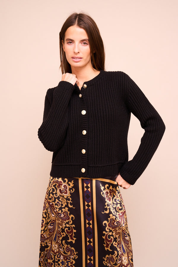 Gilet col rond, manches longues  Gilet confortable à boutonnage doré Tailles S/M et M/L 30% laine, 70% acrylique