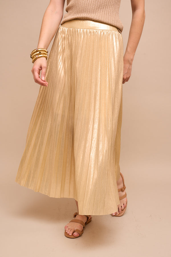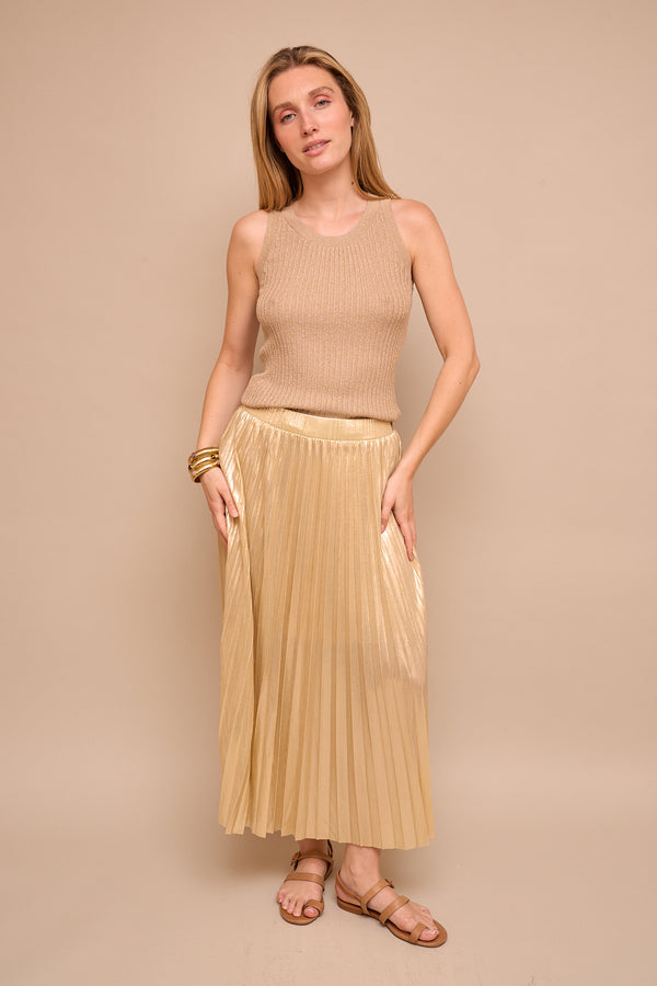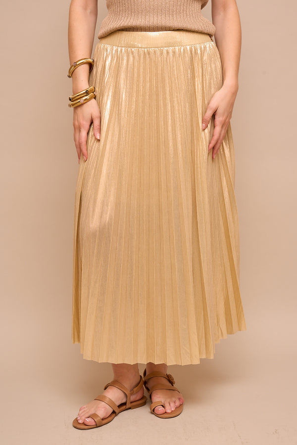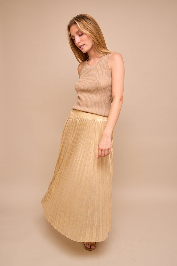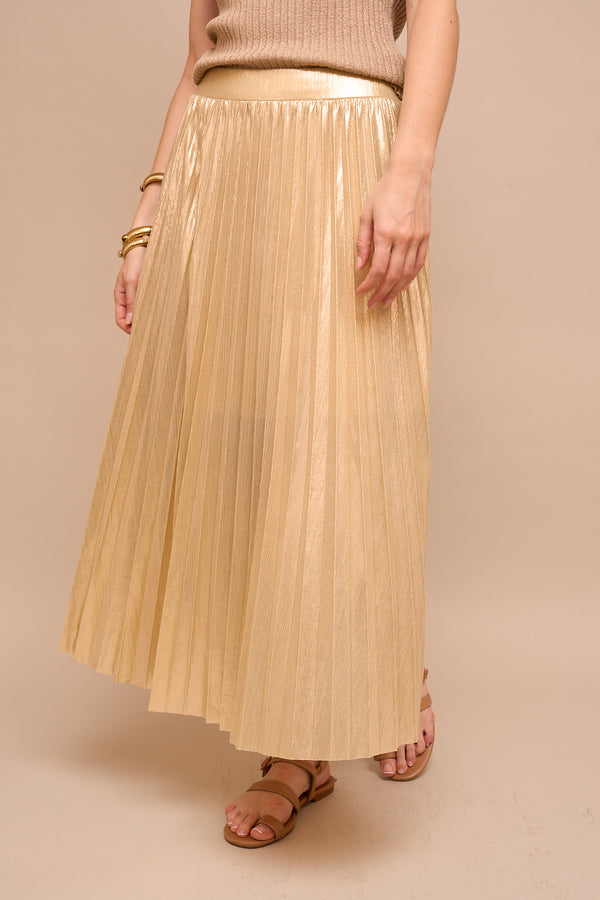 Jupe longue plissée  Elastiquée à la taille Existe en tailles S et M 97% coton, 3% élasthanne