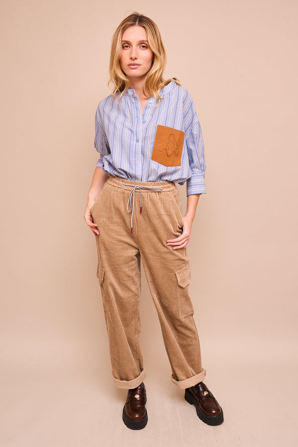 Pantalon coupe droite Pantalon élastiquée à la taille et lacet Pantalon avec poches revers plaquées  Tailles S, M et L  100% coton