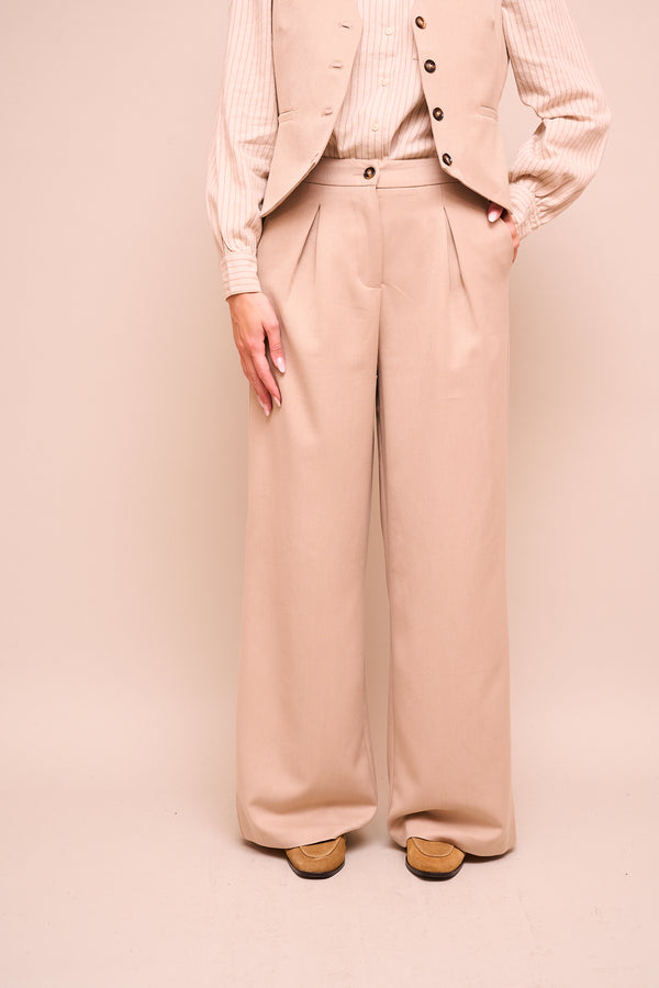Pantalon fluide, coupe droite Pantalon fermeture à glissière et bouton Existe en tailles XS, S, M et L 40% viscose, 60% polyester