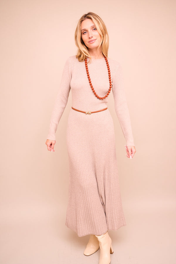 Robe longue, col rond Robe manches longues Robe offrant une silhouette sculpturale et un confort absolu Existe en Tailles S/M et M/L 5% laine, 55% polyester, 20% acrylique, 15% nylon, 5% tencel