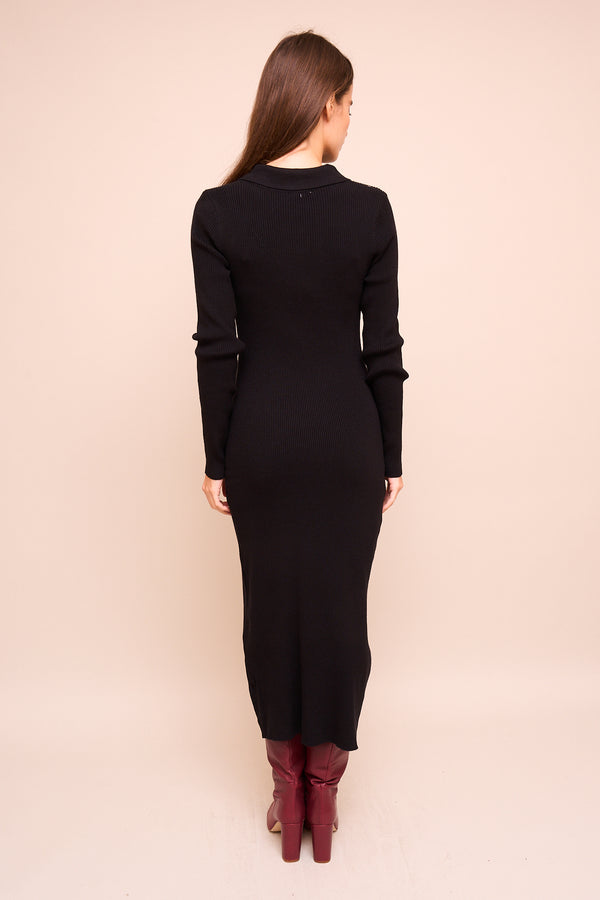 Robe longues, col chemise orné de 4 boutons dorés Robe manches longues Robe offrant une silhouette sculpturale et un confort absolu Existe en Tailles S et M 32% polyamide, 40% acrylique, 28% viscose