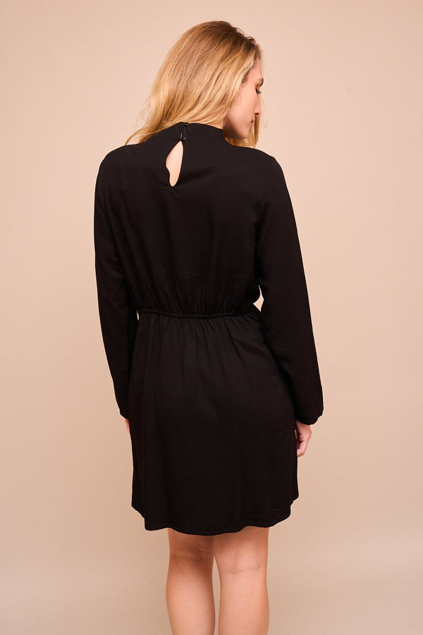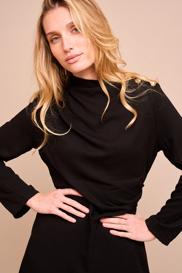 Robe courte  Robe ornée de jolis boutons sur l'épaule gauche  Robe manches longues et boutons dorés Robe offrant une silhouette flatteuse et élégante Existe en Tailles S et M 100% viscose