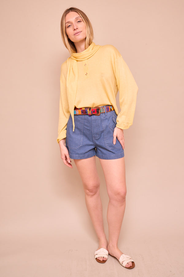 Short avec passants à la ceinture  Short avec fermeture à glissière et bouton Short avec poches latérales plaquées   Tailles 34, 36, 38 et 40 Parfait pour un look décontracté et stylé 85% coton, 5% polyester